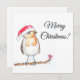 Söt julrödhake i tomteluva. Original akvarellmålning av Kylie, LoveUK. Målades 2025.