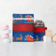 Röd blå Jultomten som kör en sömnig julomslutning papper