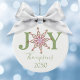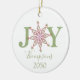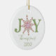 Enkel snowflingtypografi. En personlig anpassningsbar modern helgdag julfotodekoration med namn och år. Ett underbart tillskott till din familj träd eller en underbar gåva. Den här designen har julröd och grönt, söt snowflake-glädjestypografi, helgdag hemmadekoration, festligt vismligt vinterskript, vinterfärgad ljusa, Julgran-décor, familjens personlig namn, anpassningsbarna anpassar enkla minimalister, julklapp, julklapp, julklapp-dekorationer