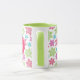 God jul, Grönt, rosa, ljusblå snöflingor mönster personlig med monogrammerad kamera mugg. Klar julstämning med Röd Grönt snöflingor eller snöfall på vit bakgrund inför vinterjulens helgdag.