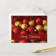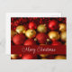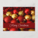 Festive Helgdag vycard, med röda prydnadsämnen och guld och fotodesign för hallon. Med anpassadets vita skrivstil kan du lägga till ett eget meddelande. A