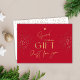 Sprid glädjen den här julhelgen med ett personlig julklapp. Denna moderna Festive Gift Voucher med guld typografi och glitter över röd bakgrund har ett verkligen lux-utseende och är säker på att framträda! Du kan sätta in din logotyp på det här presentkortet och göra en chic-minimalistisk julkupong för din skönhetsalong eller ditt småföretag.
