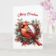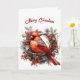 Bilden illustrerar en illustration av en röd kardinal omgiven av löv, röda bär, gräs nål och gräs.