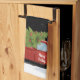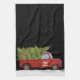 Retro red lastbil med Glad helg och grönt Julgran. Den svarta bakgrunden färg kan ändras. Text kan redigeras.