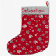 Julrött och Silver Tass avtryck Personlig Pet Stor Julstrumpa