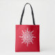 Unik musikalisk-temad tote bags för musiker och musikalisk älskare under vinterhelgdagarna. Smälter vita glimmer från en snöflinga som är gjord av tredubbla citattecken. Använda textmallen om du vill lägga till ett första eller ett monogram till mitten i dekorationsdesignen. Redigera om du vill ändra den röda julbakgrunden, mittcirkeln gräns och elegant, gamla stil till valfri färg. ♡ Idyllfire