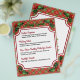 En vacker julmålare i bord (daglig specialmeny) med anpassade-menyspecialitet på bakgrund av rödplätering i julklapp med mull- och bäraccenter. Underbar för din restaurang helgdag bord eller helgdag barrumsmat.