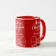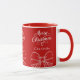 Röd bakgrund, vit text och bågar Fira säsongen med vårt moderna röda God jul mugg personaliserar och tillsätt ditt namn.