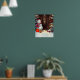 Använda den här vackra julen poster som en del av din dekoration hemma, på kontoret eller i företaget. Den poster en scen av ett sött snögubbe med presenter vid framdörren till ett hus i en vattenfärgsbild av vintagen.