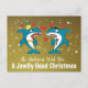 Jawlly Bra Cartoon Julsharkar på Guld med Personlig Typografi Text Postkort.