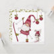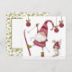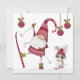 Söt julgnom på skidor med skidåkande kaninvän. Tom baksida för ditt personliga meddelande eller anteckning.