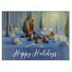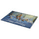 Roligt Helgdag-skärskivor med glasskiva med , vismliknande och surreella julskogar med träd med tak i snö, skapat med AI-genererande software. glad helg på blå bakgrund är anpassade. Roligt också som Julfest charcuterie board!