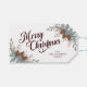 Denna julklapp visningar märkrn "God jul" på en framträdande plats i ett stort, elegant-skript som visas i en mörk burgundy färg. Märkrns hörn dekoreras med en botanisk arrangemang i vintret, inklusive gräs, fir grenar, mjuka tankar och teal löv, vilket ge det en mysigt helgdag. Anpassa den här märkrn med klassade helgdag med ditt namn.