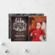 En stilren boho-kritskrifts julkortdesign för dig att anpassa med ditt favoritfoto, meddelande, namn och år på en kritskriftsbakgrund. Baksidan har fallande snöflingor på en matchande kritskriftsbakgrund. Designad av Thisisnotme©