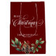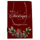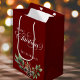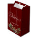 Traditionell julklapp med ett skript och en dekoration för Julhelgen på framsidan och baksidan. Lägg bara till en märkre. Om du har flera närvarande är detta ett sätt att samla ihop dem i en elegant och anpassningsbar presentsäck på perfekten. Detta kommer att se underbar ut under träd. En djup röd bas färg och en vattenfärgad dekoration med Holly-bär, grey och gräs-koner. Utformningen på dubblan, framsidan och baksidan är lika stora. Finns i olika storlekar. Det är valfritt att ha familjen namn på presentsäcken. Enkel att anpassa den till dina familjer namn, eller ta bort den. Se de andra matchande produkterna i den här samlingen för ett sammanhängande tema.