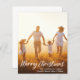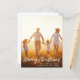 Budgetvänlig enkel och elegant julhälsningskort med ditt foto och "God Jul" i ett vitt skriptöverlägg. Anpassa med era namn i modern vit typografi.
