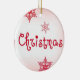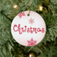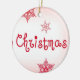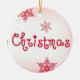 Fira årstidens skönhet med denna eleganta julgranskula med mjuk rosafärgad bakgrund, ömtåliga röda snöflingor och en fantasifullt utformad ”Christmas”-text.