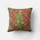 Julens Dekorativ kudde grönt, vit rödspätta och ett mousserande Julgran och ord, "God jul".