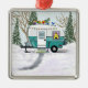 En söt teal släpvagn i snön görs redo för jul på detta vackra julgransprydnad. Gläd dina campingvänner med en speciell en-unik-gåva. Perfekt för husbils- eller husvagns-entusiasten.