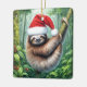 En slott som bär en julhatt hänger bekvämt från gren i mitten på en lush regnskog