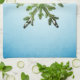 Julkökshandduk med ett kollage som skildrar en vacker snöflinga av gräs grenar. En röd jul i boll hänger på en av gräs grenar.