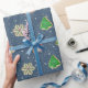 Kokakor för julsocker på vit snöflingor och stjärnornas blå bakgrund.