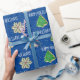 Uppsamling av sockerkakor i glad helg på vit snöflingor och blå bakgrund. Bakgrunden till färg kan ändras.