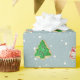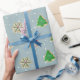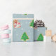 Kakor av julsocker på vitt snöflingor med mjuk blå bakgrund.