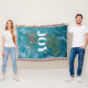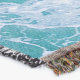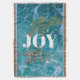 Att kasta djupblått hav vågar i bakgrunden med barrträd och julbär som ramar ord "JOY". Ett vackert Julafton-temat kustdesign som är perfekt för jul i sommar- eller kustjul-firande.