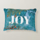 Att kasta djupblått hav vågar i bakgrunden med barrträd och julbär som ramar ord "JOY". Ett vackert Julafton-temat kustdesign som är perfekt för jul i sommar- eller kustjul-firande.