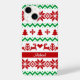 Telefonväska i julgossen mönster - snöflingor, julgranar och renar mönster