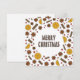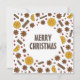 Julkort, julmat kryddor, kanelpinnar, apelsin, stjärnanis, röda bär prickar design.