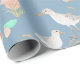 En kuststrandscen med sandpiper flytta genom havsgräs, havsglas och snäckor.