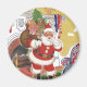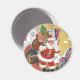 Julillustration från den klassiska barnbokshistorien "Twas the Night Before Christmas". Designen visar en jolly jultomte i vardagsrummet i ett barns hus efter att ha kommit ner genom skorstenen med en säck full av leksaker på julafton. Strumpor hänger på manteln vid brasan.