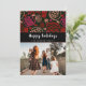 Julstilig Röd Svart Enkel linjekonst Mönster Jul Familjefoto Semesterkort. Mönster med enkel linjekonst i rött och rosa på svart bakgrund. Jul- och modern semestergestaltning med ett foto i en rund ram. Lägg till ditt foto, din text på framsidan och på baksidan.