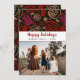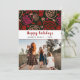 Julstilig röd svart En linjes konst Jul Familjefoto Högtidskort. Mönster i en linje i rött och rosa på svart bakgrund. Julstilig och modern högtidsdesign med ett foto i en rund ram. Lägg till ditt foto, ditt namn och år.