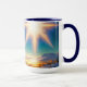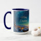 Mugg har ett vackert vinterlandskap. Tjock snölandskap med berg och en liten stad i blå, stjärnrik natt. Betlehem-stjärnan skiner över den. Underbart, anpassningsbar julklapp till din familj, vänner, affärspartner.