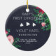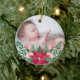 Nätt prydnad som du kan tillfoga till ditt egna foto i heder av din bebis första jul. Den har dekorerat med en färgrik blom- ordning som består av julstjärna, ro och mistletoe.