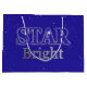 Stor presentsäck i "Star Bright" ord-konst, med julstjärnan i stjärnform, i midnattsblått och silver grått