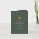 Det här moderna minalistkortet för grönt har en enkel julstjärna i guld färg med ett redigerbart religiösa-hälsning-meddelande och ditt eget namn på en klassisk grönt-bakgrund. Insidan innehåller en familjefollsamling och ett redigerbart år i granskningsmeddelandet om helgdag för vänner och familj. Baksidan av det här enkla vikta Julhälsningar kortet är ett foto på en fullt!