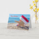 stjärnfisk i strandsand med röd och vit tomhatt från päls för tropisk jul