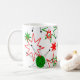 Mugg har en modern utformning av stjärnsprängningar och cirklar i julklapp färg. Roligt och festlighet. Använda i mugg för kaffe, te eller hett choklad på julförmiddagen.