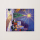 Det här pusslet har en lysande strålande stjärna över Julgran i en liten stadsfyllning med Juldekorationer.