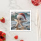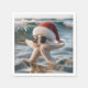 En stjärnfisk bär en julhatt och solglasögon medan man står i grunda havet vatten
