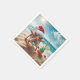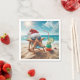 En stjärnfisk som bär en julhatt och solglasslätter på en strandstol vid havet med en cocktail