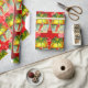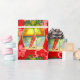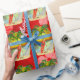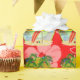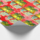 Glad helg från de varma sandiga stränderna av din favorit- tropiska ö sätter på land. Palmträd som framme dekoreras med julprydnadar och ljus, med en retro surfingbrädabenägenhet mot julgranen en solnedgång över hav. Röd helgdagfärgbakgrund av hawaianska den Honu havssköldpaddor och hibiskusen blommar.