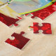 Glad helg från de varma sandiga stränderna av din favorit- tropiska ö sätter på land. Palmträd som framme dekoreras med julprydnadar och ljus, med en retro surfingbrädabenägenhet mot julgranen en solnedgång över hav. Röd helgdagfärgbakgrund av hawaianska den Honu havssköldpaddor och hibiskusen blommar.