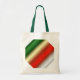 En julklapp (eller vanlig te) med en tagg mönster av grönt, guld och röd rand.