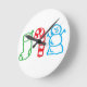 Julstrumpacandy cane och snögubbe rund klocka