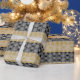 Denna moderna pappra julomslutning har guld glitter och en snöflingdesign. Ett festligt mönster som kommer att se häpnadsväckande ut med andra svarta helgdag dekorationer.